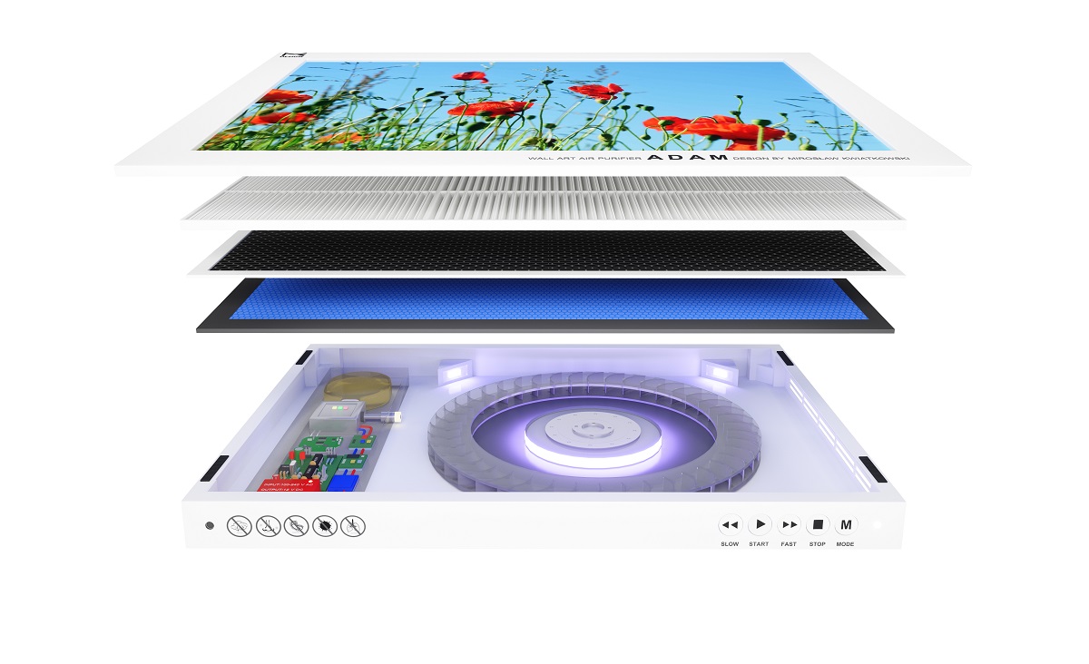 Oczyszczacz powietrza SMOGVENT Przenośny oczyszczacz powietrza ALICE Przenośny oczyszczacz powietrza ALICE w użyciu Ścienny artystyczny oczyszczacz powietrza ADAM Ścienny artystyczny oczyszczacz powietrza ADAM w użyciu